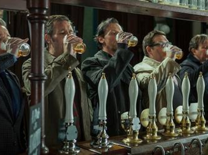 Simon Pegg would kill for a beer. Will. Has. Is. Over and over again. An hour into The World's End, halfway through a pub crawl he's been waiting twenty years to finish, he engages in a beautifully choreographed kung fu spectacle with an army of blue-blooded robots (literally and figuratively—when killed, they explode with a viscous, cyan goop the consistency of acrylic paint; they are also a kind of walking metaphor of middle class British respectability). He holds a beer in one hand, a full English pint, while he twists and weaves, kicks and punches, smashes heads, tears off arms, plunges his free hand into body cavities. All the while, his beer—his delicious, golden beer, with a delicate white head lacing up the sides—survives. He spills a few drops—more than a few drops, sloshing it back and forth as he does his best impression of Bruce Lee with a bad case of the DTs. You get the impression, watching the scene, that he wants to survive, but that his survival is only a means to an end. The real object is finishing his beer, finishing the crawl, watching another glass bubble up with that frothy amber nectar. It's a metaphor, I suppose, but true to director Edgar Wright's style, it's a metaphor so exuberantly unsubtle that it stretches the definition of the word. He cares more about this beer than his life.